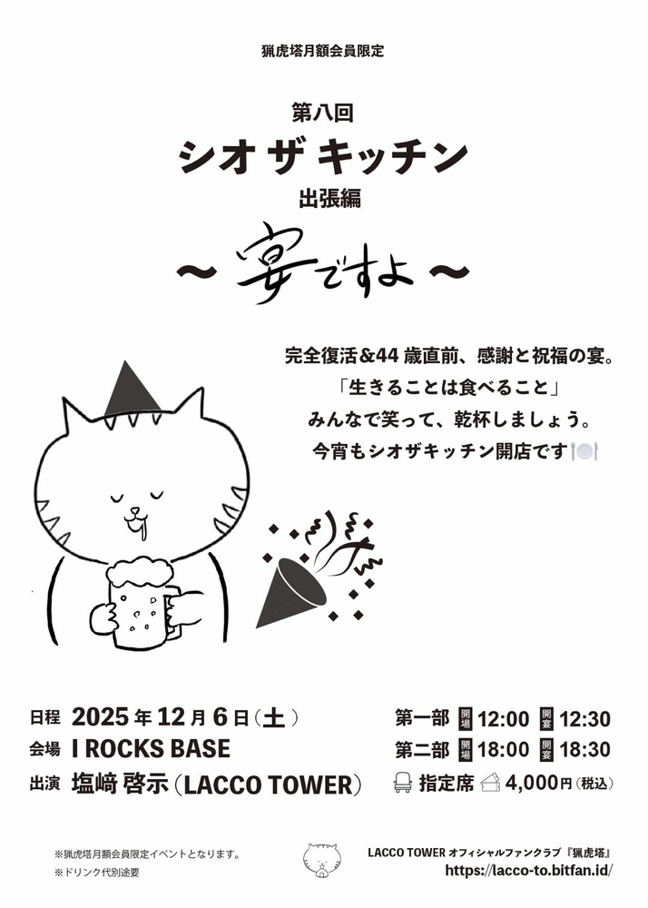 塩﨑による、オフィシャルFC『猟虎塔』月額会員限定イベントの開催が決定いたしました!